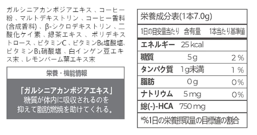 ダイエットコーヒーシクテンの成分は以下の通りです。